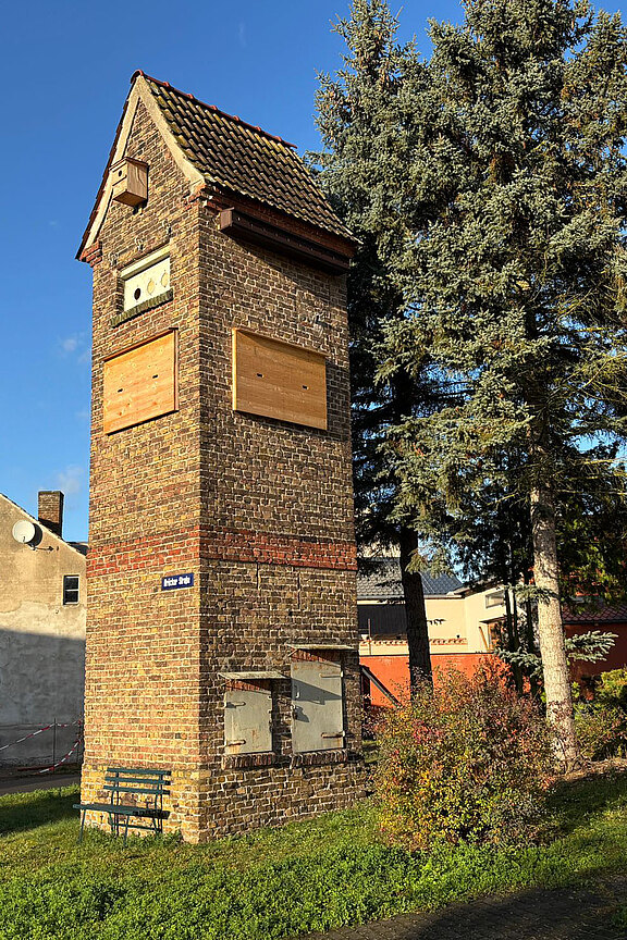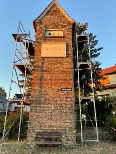 *Der Umbau des Trafohäuschens zu einem Vogelturm wurde von der Unteren Naturschutzbehörde finanziert.